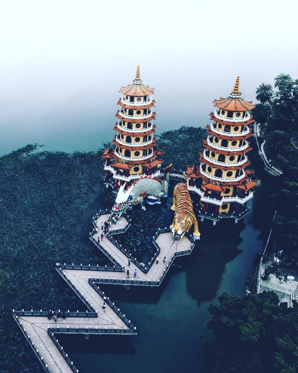 Дракон и тигр Пагода ( китайский : 龍虎塔 ; пиньинь : Lónghǔ Tǎ ) является храм , расположенный в Лотос озера в Zuoying районе , Гаосюн , Тайвань . Храм был построен в 1976 году. Одна из башен - Башня Тигра , другая - Башня Дракона .