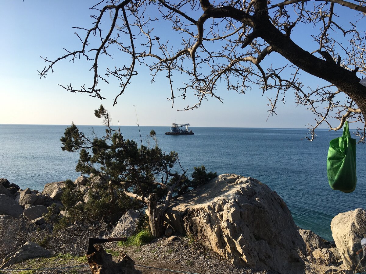Проснулся именно от яркого светящего солнца и тепла. В палатке было жарко и душно. Выйдя из палатки я аж зажмурился от яркого солнца. Какое прекрасное утро! Синее голубое небо, приветливые весеннее солнце, спокойное Бирюзовое море - всё это поднимало настроение и призывала к прогулкам.