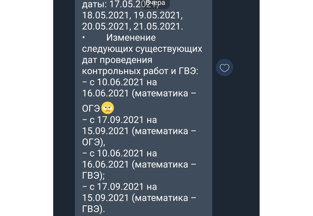 Мало того, что в этом году из-за будет большой провал по той же математике в девятых классах благодаря "умникам" которые придумали задачи каждая из которой занимает страницу, и девятиклассник, а точнее половина их просто элементарно не успевают их просто дочитать до конца экзамена, что уж говорить про само решение, так вот взять и сдвинуть сроки сдачи на целых 6 дней.