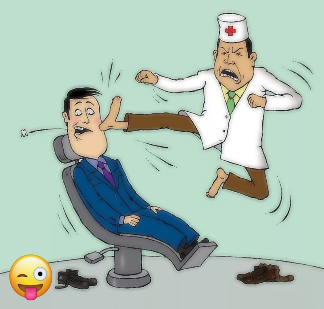 Вот вспомнил случай , как кто ходил в стоматологу чтоб удалить зуб, сам боюсь их ужасно, попросил сделать укол чтоб не чувствовать , все сделали и начал выдергивать зуб, а укол не подействовал и была такая боль что аж ручку от кресло чуть не выдернул , примерно так же как в анекдоте.