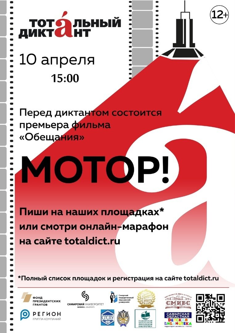 10 апреля в 15:00 по самарскому времени мы приглашаем всех преданных поклонников Тотального диктанта на наши площадки по адресам: