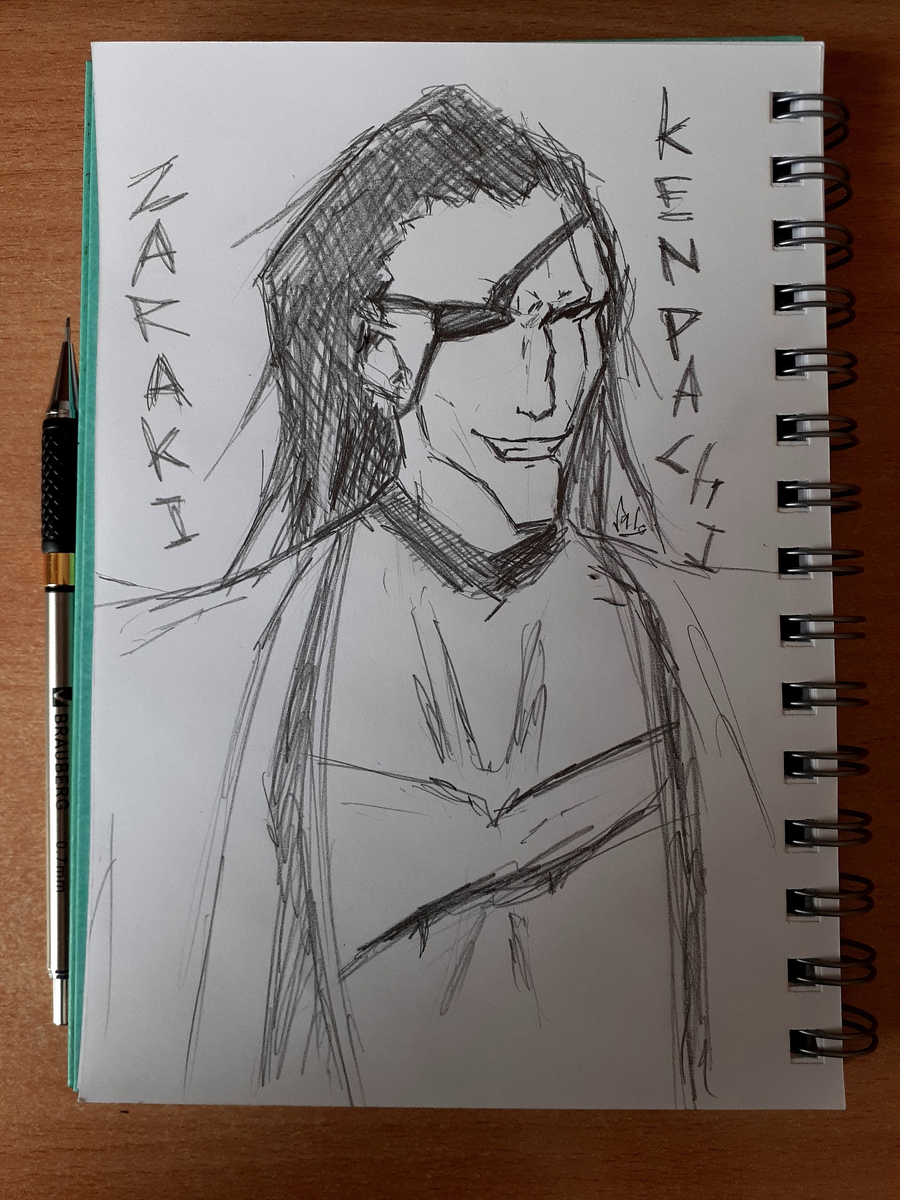 Кенчик не имел имени. Он родом из "Зараки", 80-го района Руконгая . Этот район был худшим, полным разбойников и серийных убийц. В детстве Кенчик подобрал меч с тела мёртвого шинигами впоследствии наложил на занпакто отпечаток своей души, тем самым превратив его в свой занпакто. Маленький Кенчик набивал опыт в искусстве фехтования путём убийств многочисленных противников. Как-то он встретил Ячиру Унохану и сразился с ней. Это был первый бой, в котором он почувствовал наслаждение, Ведь скучно просто рубить врагов, которые не были способны оказать ему достойного сопротивления. Он всегда подавляет свою силушку, чтобы сражаться как можно дольше и в итоге проиграл. После боя, он начал восхищаться ею и хотел сражаться, как она.
