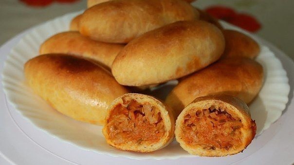 Если вы хотите чтобы начинка из капусты получилась очень мягкая, практически не ощутимая, то можно предварительно залить нашинкованную капусту кипятком, и оставить на 5-10 минут. Затем воду слить и обжарить. Если любите слегка хрустящую капусту в начинке, то предварительно кипятком заливать не надо. Всего получается 12 пирожков.