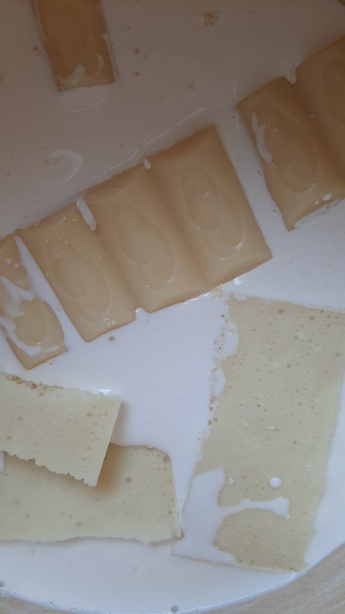 Берем сливки, ломаем туда белый шоколад и ставим на медленный огонь. Постоянно помешивая мы растапливаем шоколад в сливках. Только не кипятить.