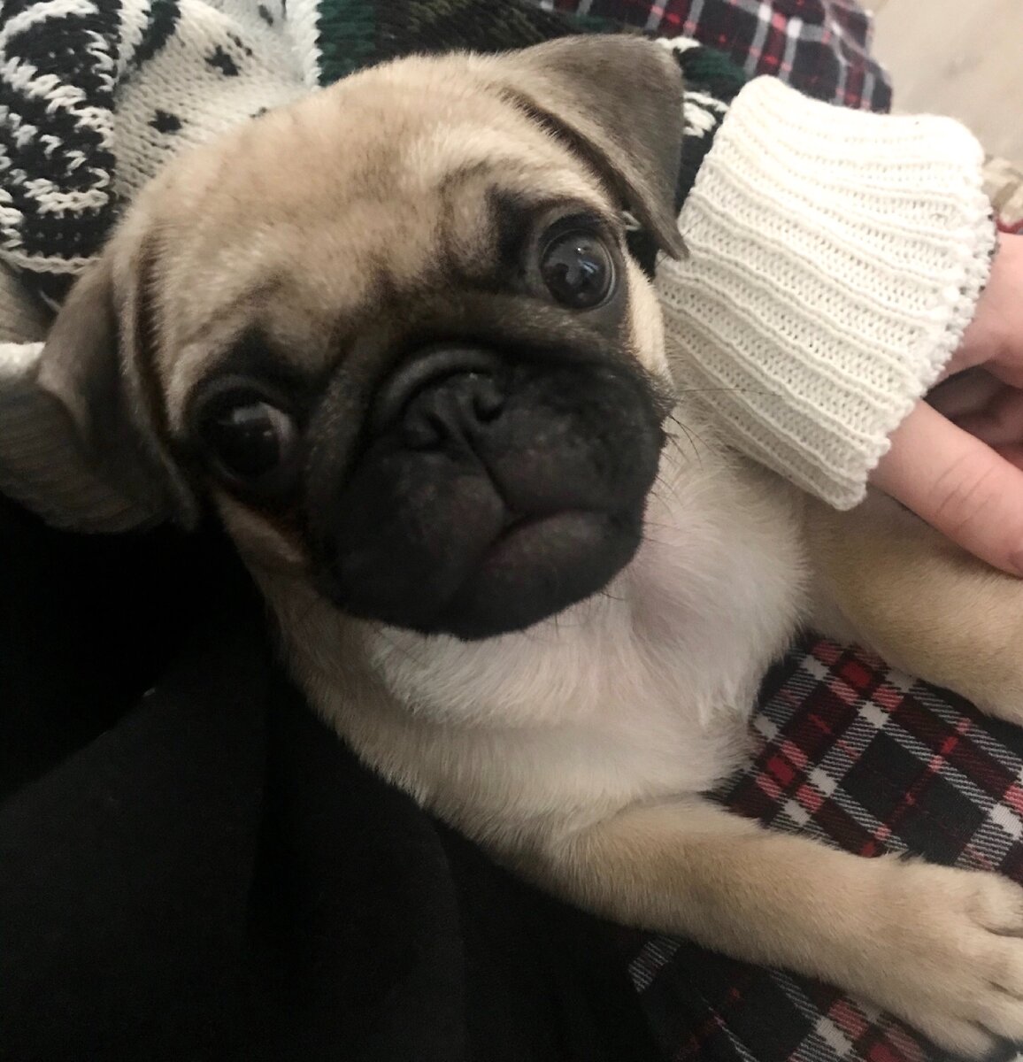 - Шерсть у собачки должна быть без залысин, перхоти, в идеале-шелковистая и блестящая(если это чёрный мопс, к примеру, то не должно быть никаких пятен, допустима белая полосочка на груди, которая со временем зарастёт);