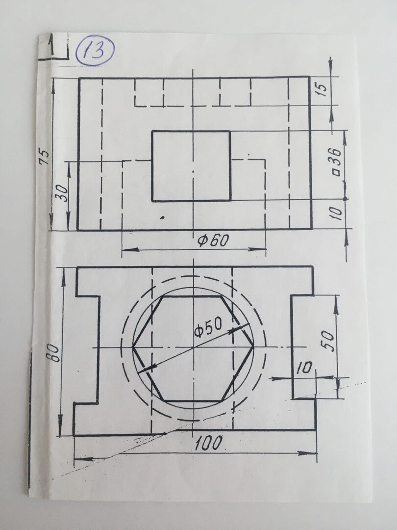 Задание: по двум заданным проекциям построить третий вид. Построить разрез и аксонометрию.