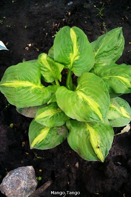 Спорт сорта «Dance with Me». Среднего размера хоста высотой 40-50 см и ширина 90 см. Листья округлые глянцевые зелёные с узким нерегулярным желтовато-зелёным центром, изогнутые и гофрированные, будто простёганные. Цветки бледно-лавандовые. Цветение в июле. Место полутенистое или тенистое. Почва влажная дренированная. Зона 3 (до -34ºС).