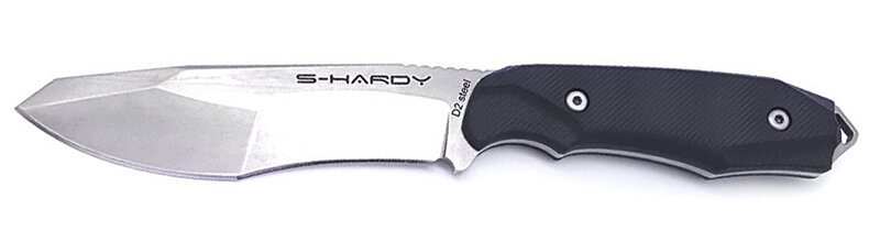 Этот крепкий рабочий нож создан для тяжелой работы в полевых условиях. Благодаря особенностям конструкции, Mr.Blade S-Hardy получился максимально универсальным инструментом. Всё дело в форме и конструкции клинка: лезвие имеет расширение в средней части, по которому проходит вертикальное ребро жесткости, что делает и без того крепкий клинок ножа ещё более устойчивым при тяжелой работе. Из-за того, что баланс клинка смещен в сторону острия, а лезвия в этой части имеет утолщение и расширение, нож позволяет рубить даже толстые поленья, а еще им можно снимать дёрн или даже использовать в качестве импровизированной лопатки. У пятки клинка лезвие несколько тоньше и имеет вогнутые спуски. Этот участок позволяет выполнять деликатные работы, а также стругать, разрезать веревки и ткань.