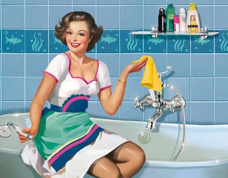 Прежде чем приступить к мойке кафеля на стенах, нужно на 10 минут включить горячую воду в ванной комнате, и плотно закрыть дверь. После такой паровой бани, загрязненные поверхности будет легче очищать.