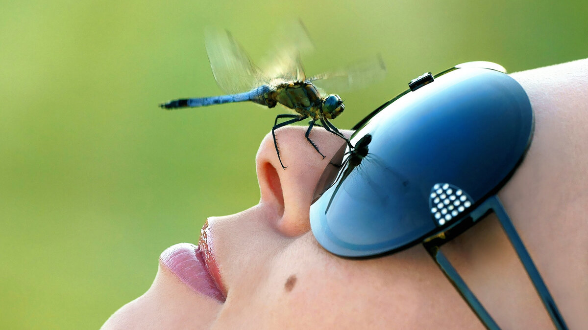 Вдруг прямо на нос девочке села огромная стрекоза. Она было хотела ее отогнать, потому как та достаточно больно вцепилась лапками в ее кожу. Но стрекоза только пересела на плече, и ни в какую не хотела улетать.