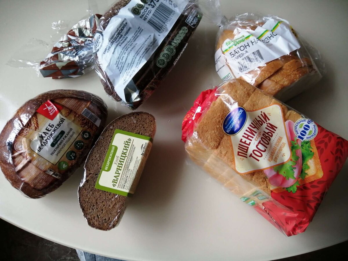 Хлеб, как известно, всему голова. Магазины просто поражают широким ассортиментом хлебобулочных изделий, хлеб можно выбрать на любой вкус: цельнозерновой, бездрожжевой, на закваске, без муки, овсяный, ржаной, пшеничный. Производители уверяют, что хлеб так полезен, в составе только натуральные ингредиенты. Правда, познакомившись с составом, убеждаешься, что это не так, да и хранится современный хлеб по несколько дней, не черствея. Так что к натуральности хлеба есть много вопросов. Хлеб, испеченный в хлебопечке, уже на второй день начинает черстветь, а вот купленный в магазине и неделю лежит, как будто недавно испекли, совершенно не меняясь. При этом стоимость хлеба мало влияет на его качество. Для эксперимента мы приобрели несколько видов хлеба разных производителей и стоимости. Участники тест-драйва 1. Хлеб "Варницкий" (бездрожжевой). ООО “Монастырское подворье”, г.Ярославль. Вес: 184 г. Цена: 35,14 руб Состав: мука ржаная х/п обдирная, вода питьевая, мука пшеничная х/п 1 сорта, п