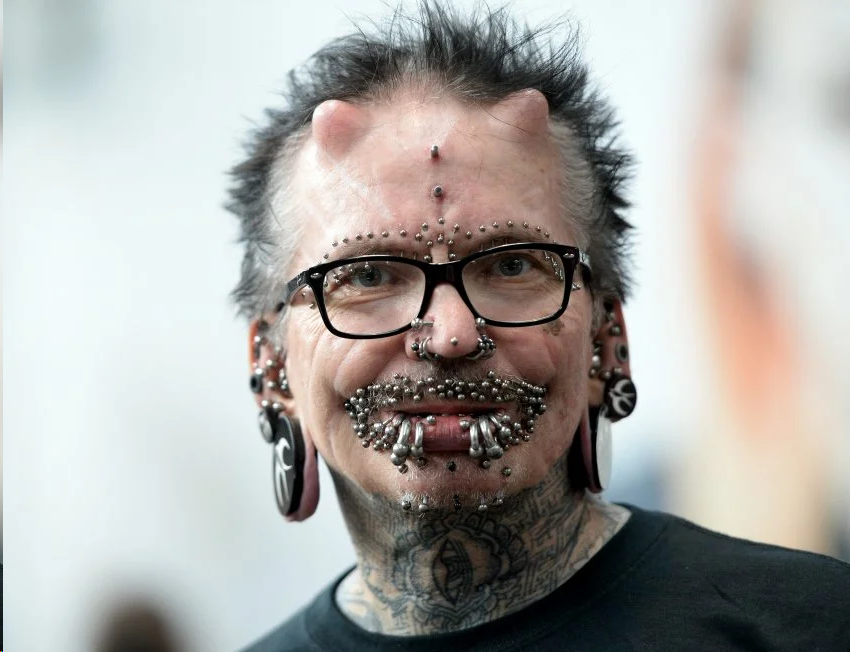 В Германии живет самый пирсингованный мужчина в мире. На его теле, в том числе лице и голове, 453 элемента пирсинга. Ему уже 52 года, но любовь к подобному украшению тела не угасла. Мужчина вошел в Книгу рекордов Гиннесса благодаря увлечению. Внимание окружающих привлекают пирсинг и татуировки человека. В области губ расположено 94 серьги, в бровях — 25, 8 — в носу. Около полусотни сережек