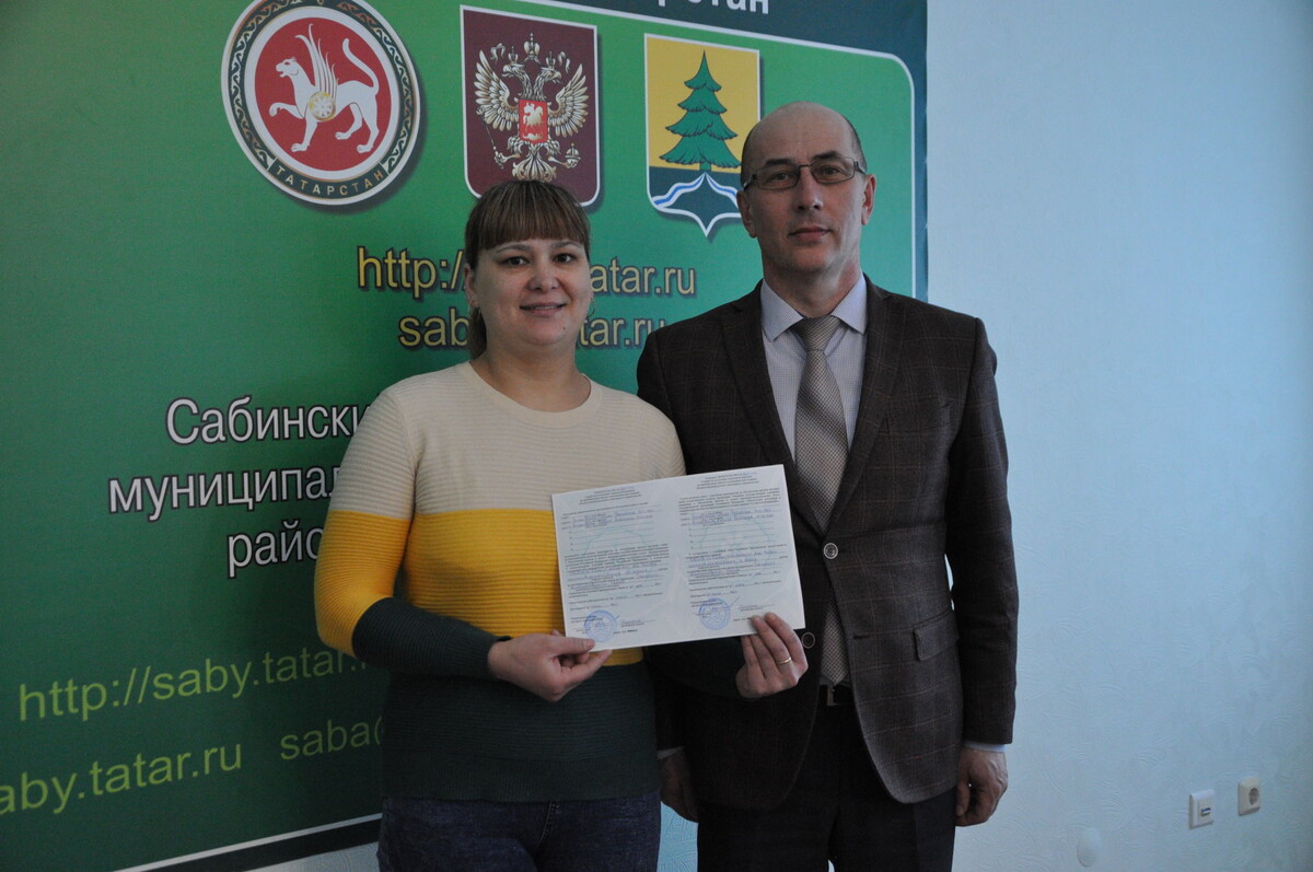 Саба районы хакимиятендә яшь гаиләгә дәүләт ярдәме алу өчен сертификат тапшыру тантанасы узды. Быел дәүләт ярдәмен Әгъләмҗановлар гаиләсе алды.