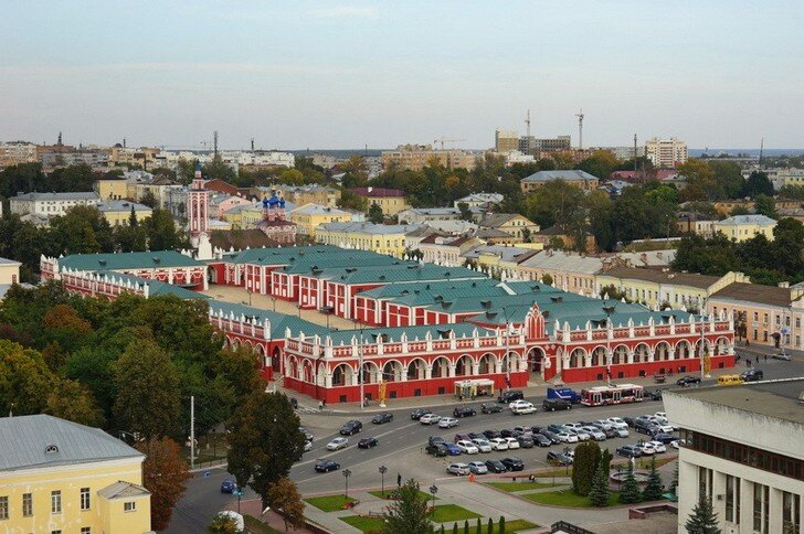 Еще одно творение Петра Никитина, который немало потрудился над архитектурным обликом Калуги. Строительство Гостиных рядов производилось в период 1784 – 1823 гг. в классическом стиле с декоративными элементами старинной русской архитектуры. Гостиный двор является одной из самых живописных достопримечательностей города, здесь любил бывать Н. Гоголь. Комплекс имеет статус памятника