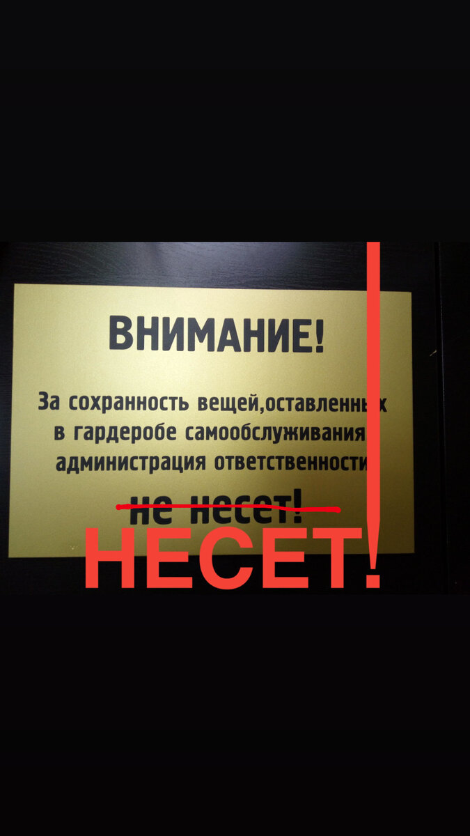 Ежедневно мы пользуемся услугами гардероба . Сдаём вещи в гардероб в школе,на работе , в кафе, в театре и других заведениях. Каждый видел табличку и предупреждение , что администрация не НЕСЁТ отвественности за ценные вещи или за потерю вещей. Это МИФ! В этой статье я расскажу , как отстоять свои права.