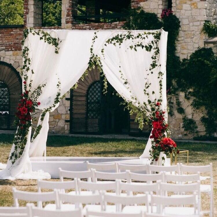 Арка из цветов на свадьбу может иметь различные формы. Пользуются популярностью конструкции:
