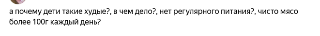 На полном серьёзе меня спрашивают, едят ли мои дети 100 гр. чистого мяса в день.
