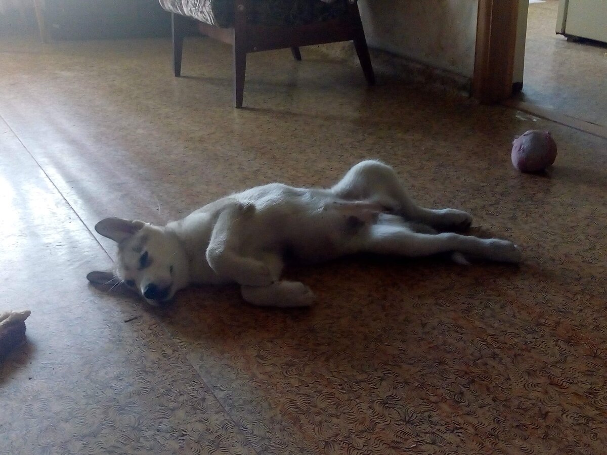 Здесь еще на карантине перед 3-й прививкой, поэтому резвились как могли, в том числе обливались водой, брызгали воду по полу, а потом в самую сильную жару отдыхали.