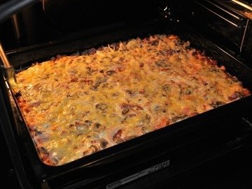 Пачку масла и сметану смешать. Добавить муки столько чтобы тесто не прилипало к рукам. Тесто разложить на противень и дольше добавить любую начинку.