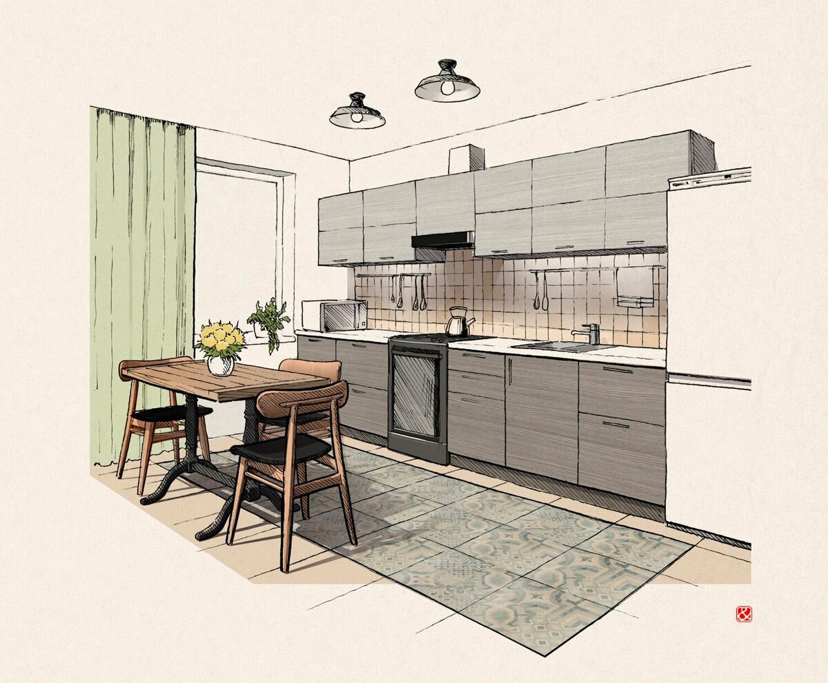 Это был 2018 год. Самостоятельно придумали весь дизайн и сделали ремонт (там где могли своими руками), но помощь профессионалов тоже требовалась.