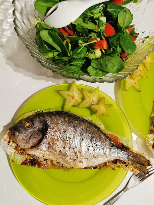 Для приготовления подойдёт любая некрупная рыба. Я "поймала" в магазине пару дорад.
