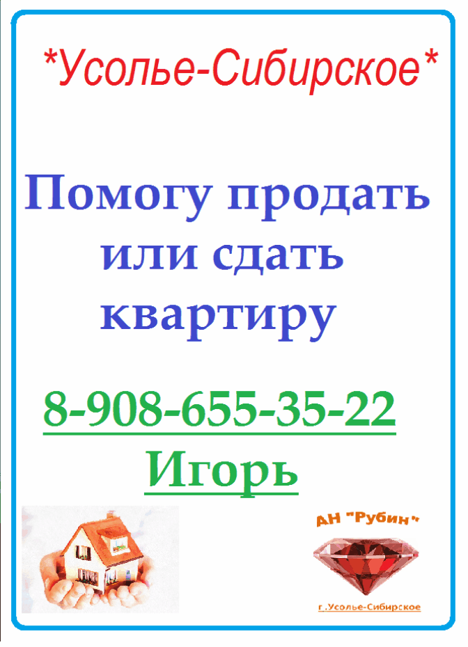 Помогу продать или сдать квартиру в Усолье-Сибирском.