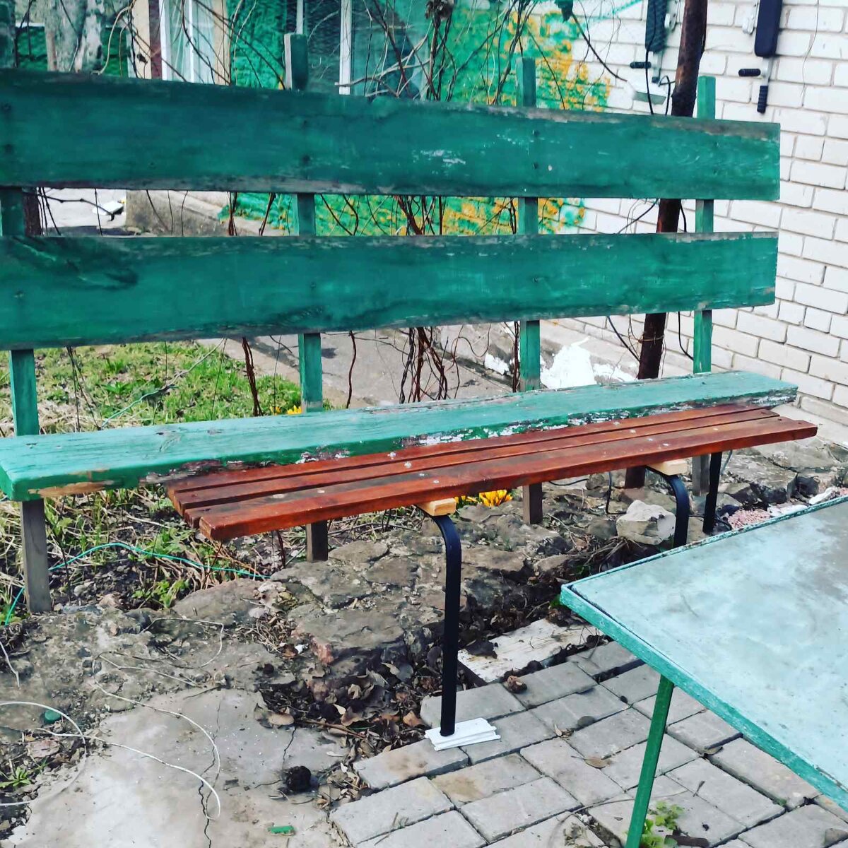 Брус был использован для укрепления другой скамейки, а недавно мне попалась акция - перила 2500 длиной по 98 гривен(3 евро), и я купил 9 штук чтобы отремонтировать