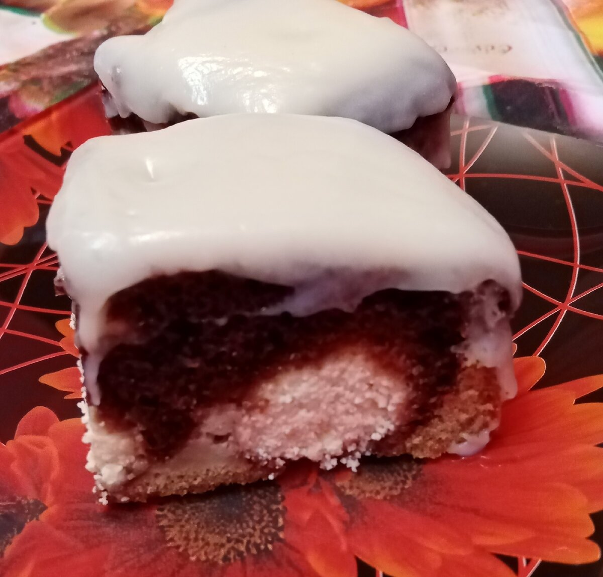 - Готовый пирог не вынимая из формы залить кремом, дать остыть полностью и убрать в холодильник на два часа.