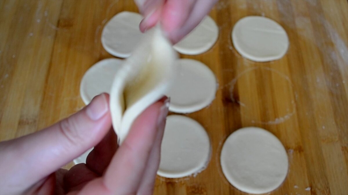 Слоёное тесто хорошо разморозить.Сформировать лодочки.