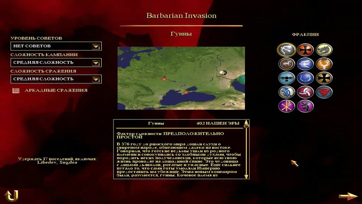 Если кому интересно, то могу поделиться ещё одной хорошей новостью. Мой хороший друг и уважаемый человек VIR позволил мне портировать его карту на движок оригинала Rome Total War - Barbarian Invasion. Речь идёт как раз о карте из проекта Русь ТВ. Она уж очень сильно подходит для реализации событий в Среднерусской равнине времён Гуннского вторжения. И правда, почему тема славян во времена Поздней