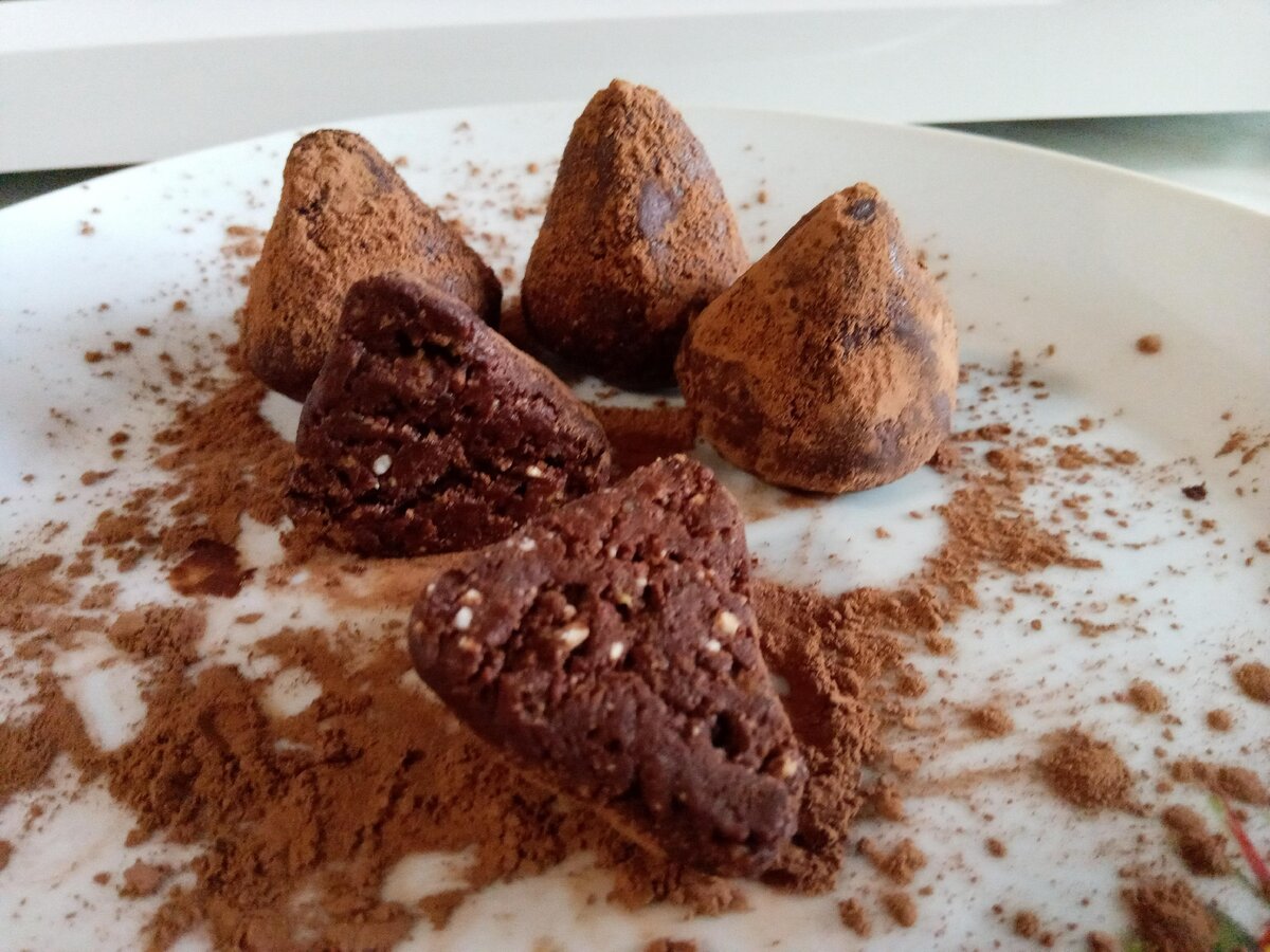 3. Сформировать конусы, обвалять их в какао-порошке и отправить на блюде в холодильник часа на 3-4.