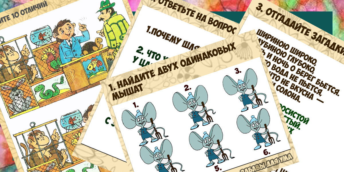 Здравствуйте, друзья! Рада встрече с вами. Вы уже приготовились к разгадыванию очередных загадок? Они уже ждут вас. Настраивайтесь на позитивный лад и приступайте к выполнению этих веселых заданий. Удачи! 1 задание. Перед вами мышата- работяги-фермеры. Смотришь на них, ну все на одно лицо. А ведь это не так. Тут только два мышонка одинаковые. И их вам предстоит найти. Так какие же мышата являются копией друг друга? Напишите в комментариях. 2 задание. Посмотрите на эти две картинки. На них изображен зоомагазин. Покупатель в замешательстве. Он не знает, какое животное ему выбрать. Обе картинки похожи, очень похожи. Но различия все же есть. Рассмотрите внимательно оба изображения и найдите все 10 отличий. Все отличия нашли? Отлично! 3 задание - это загадки. И вам предстоит их отгадать. Многие слова в каждой загадке уже указывают на ответ. Думаю, что вы легко справитесь с их разгадыванием. Какие у вас отгадки? Напишите в комментариях. 4 задание веселое. Перед вами несколько каверзных вопро