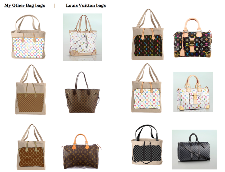 Спор между Louis Vuitton и My Other Bag начался в 2014 году. Небольшой американский бренд, основанный в Лос-Анджелесе, и известный канвас-сумками, которые немного похожи на сумки Balenciaga, Proenza Schouler, YSL, Celine и, конечно, Louis Vuitton. На одной из сумок компания обыграла культовый принт Louis Vuitton: монограмму “LV” заменили буквами “MOB”, а рисунок изображал точный дизайн сумки.
