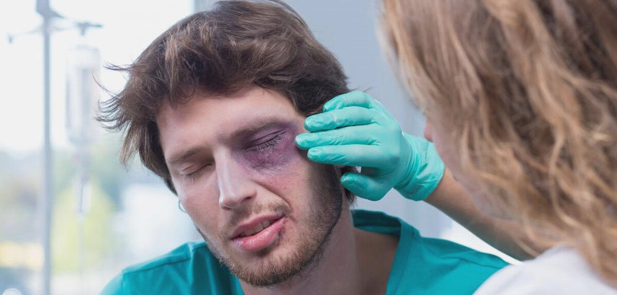 Ткани вокруг глаз очень рыхлые и попасть крови туда проще всего. Поэтому очень важно знать, что в первый день после получения травмы в лоб или переносицу могут появиться только шишки но на следующий день обязательно возникнут синяки в области глаз.