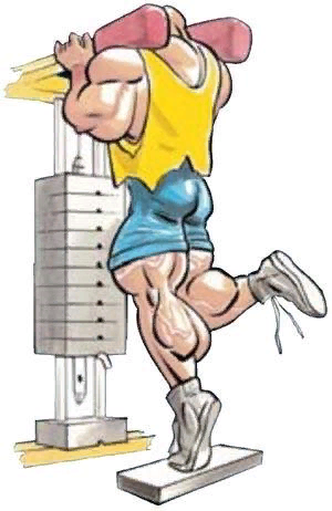 Для выполнения упражнения используется обычный тренажер для подъема на носки стоя. Встав одной ногой на подставку, встаньте на носок до чувства растяжения мышц в икре. Выполните три подхода по 15 раз с минутным отдыхом между подходами. Начинать лучше с небольших весов.