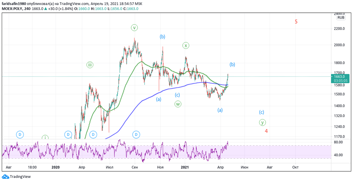 Думаю коррекция ещё не завершена. Движется в район 1400 - 1500 рублей.