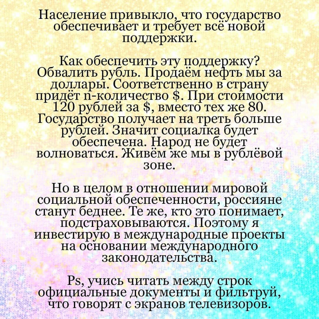 К сожалению, о рубле говорить в положительных тонах не приходится. Рубль уже прогнозируют к курсу 100 за 1 доллар. ✔А это значит, что большинство россиян станут буднее. И хоть с экранов телевизоров нам вещают, что Россия не зависит от курса рубля. На самом деле, это не так.