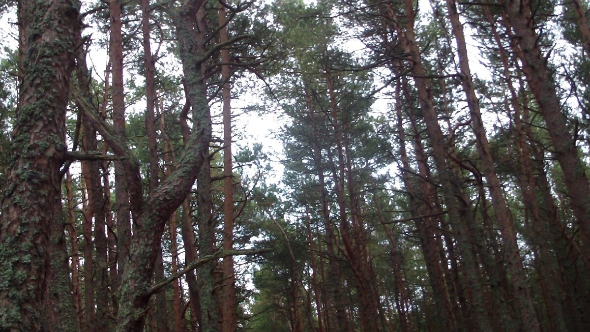 Причина такого их «поведения» до сих пор точно не определена. Этот лес входит в состав национального парка "Куршская коса". Он появился здесь в 1961 году, когда искусственно высаживали деревья для того чтобы укрепить пески. Прошло более полувека, и за это время выросшие здесь хвойные деревья приобрели очень замысловатые формы.