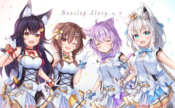 🍙 Некомата Окаю. Немного флегматичная, добродушная кошка, которая любит покушать. Любит подшучивать над другими и часто крадёт чужую еду. У Окаю один из самых успокаивающих голосов, среди девочек. Она и Короне знают друг друга давно и являются лучшими подругами. Посмотрите их совестные стримы - это очень весело!