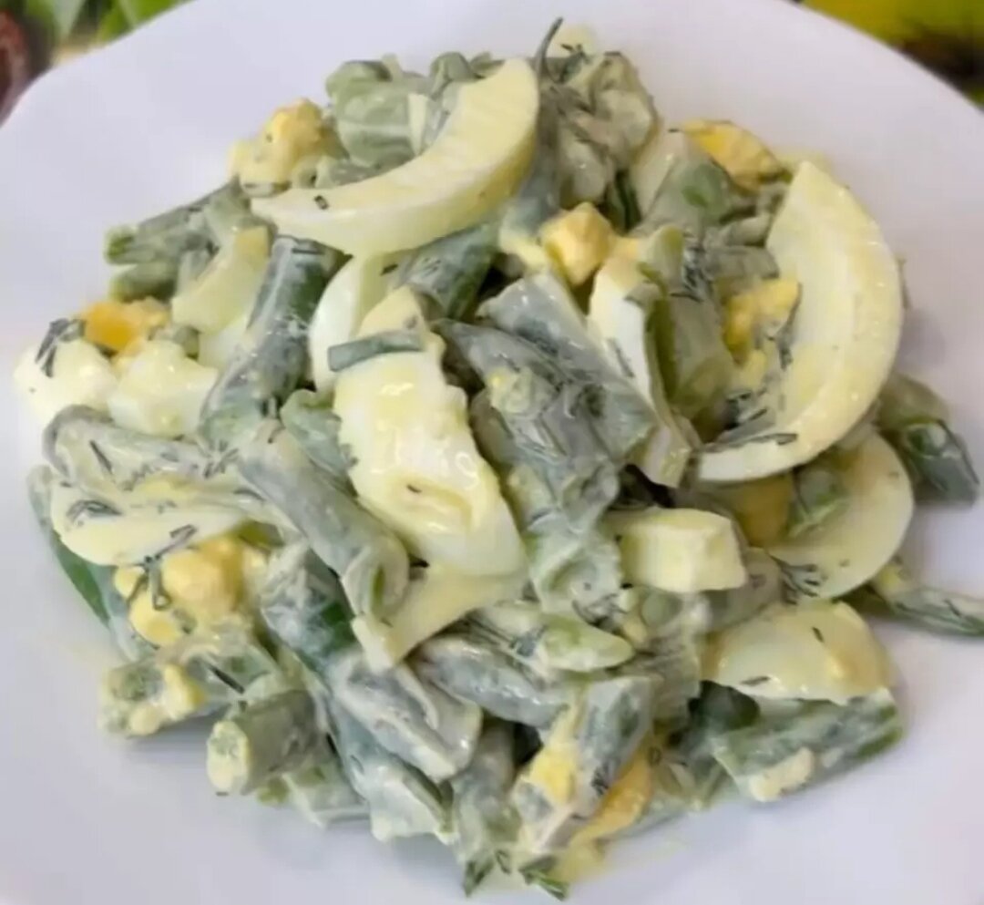 3. Яйца нарезала и добавила к фасоли.