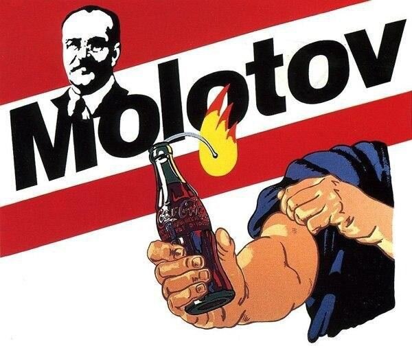 Во время советско-финской войны 1939-1940 годов министр иностранных дел Молотов говорил, что советские войска сбрасывают не бомбы, а грузы с продовольствием для голодающих финнов. В Финляндии такие бомбы окрестили «Молотовскими хлебными корзинами», а потом стали называть устройства с зажигательной смесью против советских танков «Коктейлем для Молотова». У нас название подобного оружия сократилось