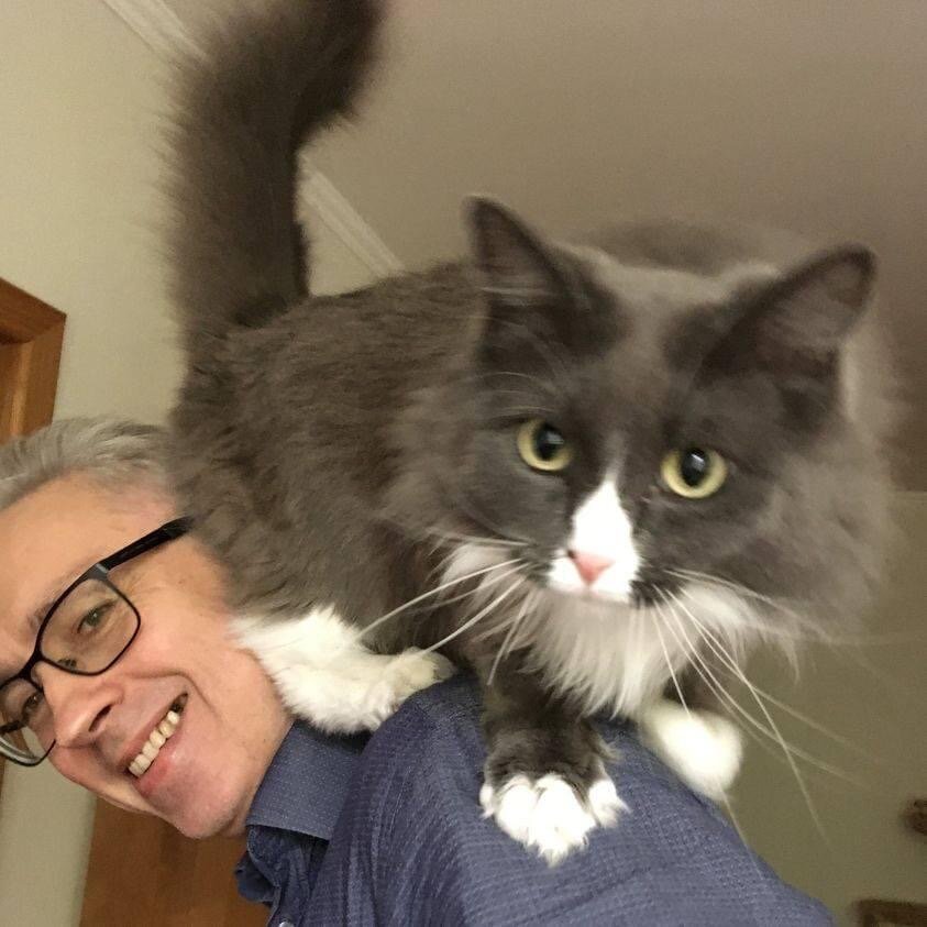 Вы спросите, а как же теперь Маруся? Маруся адаптировалась. Точнее, адаптировала нас. Еду ей Таня ставит на шкаф. Время от времени, мы запираем Фисташку в другой комнате или на балконе, и тогда Маруся идет гулять. В остальное время она прибегает к старому испытанному способу: садится на краю шкафа и издает мелодичное протяжное «мяу». Кто-нибудь из нас прерывает то, чем он занимался (работу или личную жизнь) и подходит к месту посадки. Маруся осторожно пробует лапой надежность плеча, потом величаво сходит.