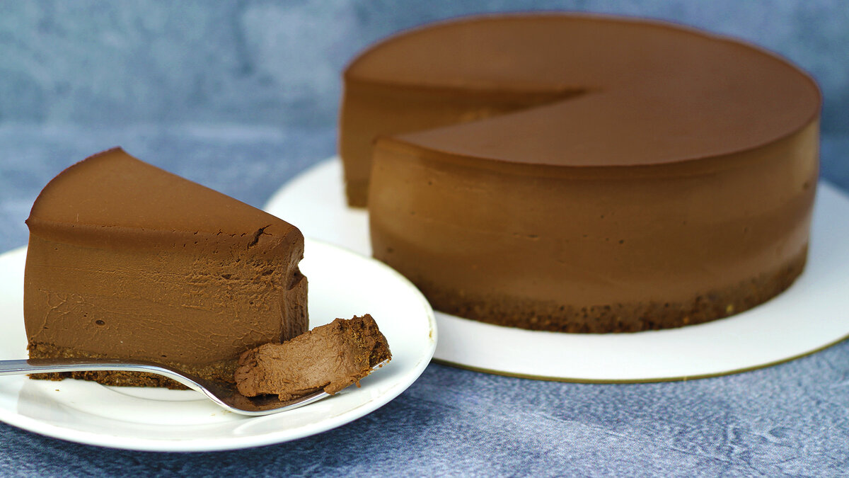 Вот такой аппетитный шоколадный чизкейк у нас получился. У него насыщенный шоколадный аромат. И выглядит он максимально шоколадно!