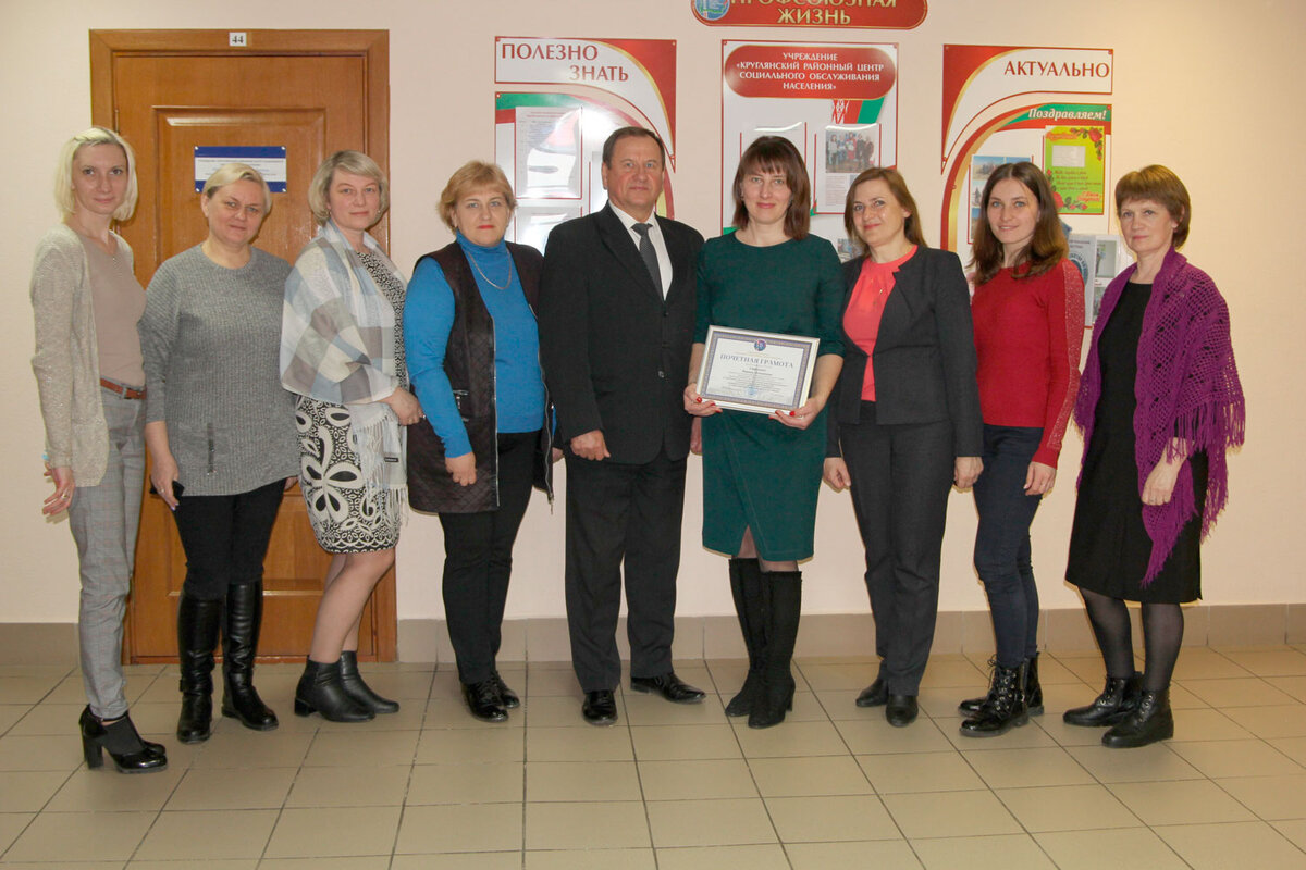 На прошлой неделе Круглянский районный центр социального обслуживания населения с приятной миссией посетил председатель областной организации профсоюза работников государственных и других учреждений Николай Загорский. За добросовестный труд, высокий профессиональный уровень, плодотворную общественную деятельность и значительный вклад в работу по социальной защите граждан в условиях неблагоприятной эпидемической ситуации Почетной грамотой Белорусского профсоюза работников государственных и других учреждений в торжественной обстановке, в присутствии трудового коллектива награждена специалист по социальной работе отделения первичного приема, анализа, информирования и прогнозирования Марина Станкевич. С заслуженной наградой Марину Леонидовну тепло поздравила также председатель районной организации отраслевого профсоюза Светлана Лебедева.