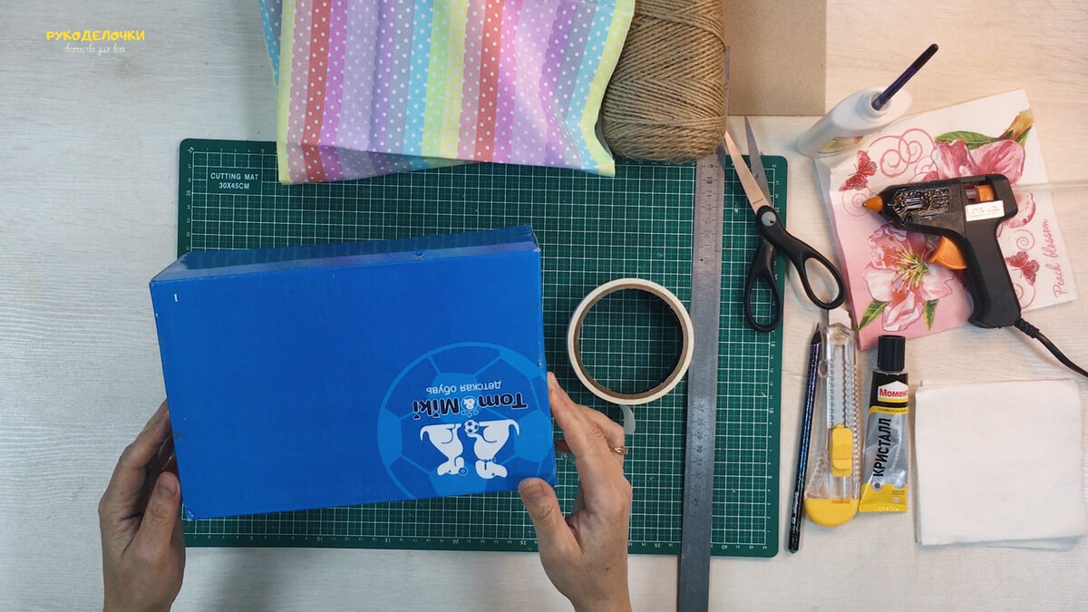 Как из обычной обувной коробки своими руками сделать симпатичную коробочку для хранения, например, ваших художественных материалов?