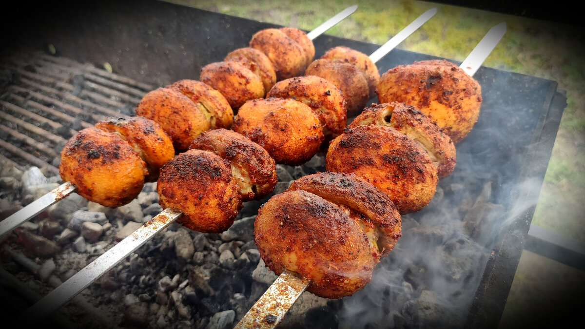 Наступил сезон шашлыка, вылазки на природу и отдыха. Любите жареные грибы? А пробовали ШАМПИНЬОНЫ на Мангале? Предлагаю приготовить Шашлык из грибов! Ароматные, румяные и безумно вкусные фаршированные шампиньоны, приготовленные на углях, можно использовать как самостоятельное блюдо, так и как дополнение к шашлыкам, грильным колбаскам, картофелю. Как приготовить очень вкусные и сочные грибы на