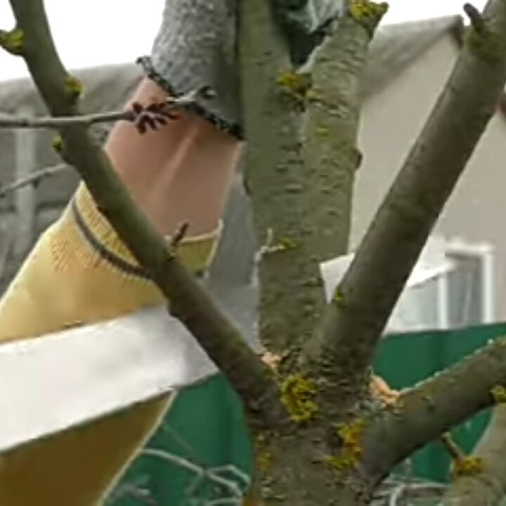 Одно из распространенных явлений, на которое мало кто обращает внимание, когда крупные ветки растут под очень острым углом, пока ничего не случилось они не причиняют беспокойство. Но, однажды, дерево может разломаться до самого основания, ведь такие ветви имеют не прочное крепление со стволом, потому что слои древесины разделены отмершей корой. Если ветка толстая, отпиливаем ее в несколько приемов, чтобы она не отломалась от ствола во время спила.