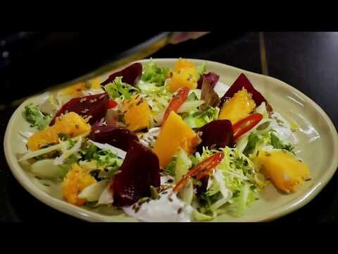 - Разложите шпинат по тарелкам или мискам и положите сверху курицу, мускатную тыкву и виноград. Перед подачей сбрызнуть оставленной заправкой.