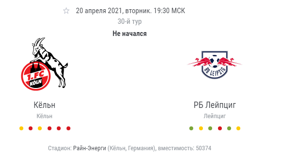 Кёльн в последнем туре чемпионата проиграл Байеру 0-3 и не может победить уже на протяжении 9 матчей. Кёльн занимает предпоследнее место и ему необходимо набирать очки, чтобы попасть в стыки. Лейпциг занимает вторую строчку и отставание от Баварии составляет 7 очков. В выездных матчах Лейпциг забивал минимум три мяча в 6 из 7 игр. Несмотря на то, что борьба