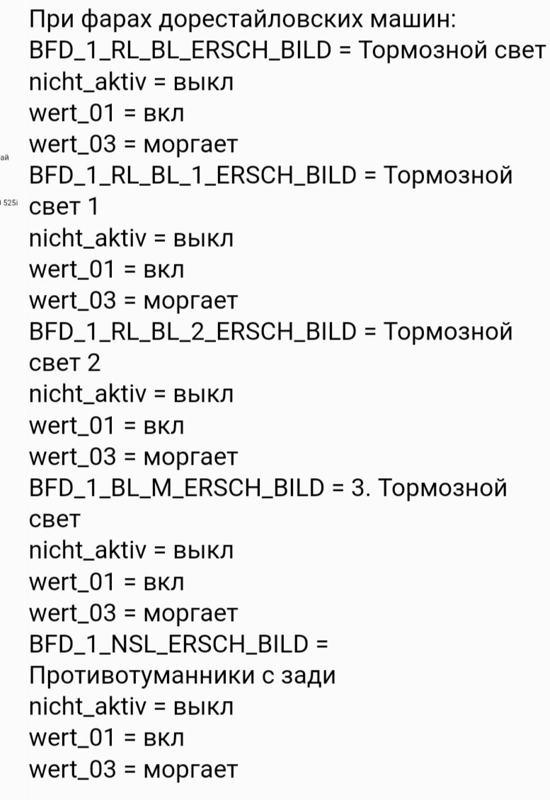 Привет! Все будет выглядеть так: при экстренном или резком торможении задние стопы будут моргать, это привлекает внимание сзади идущих авто, да и смотрится необычно. Сегодня я дам азы по кодированию BMW E60 с помощью NCS EXPERT и это работает не только на BMW E60, на др. моделях тоже. Ну что, приступим. 1.Подключаем кабель K-Dcan 2.Запускаем софт NCSEXPERT 3.Заходим File /Load File/Загружаем Профиль Expert mode. 4.Нажимаем F1, потом F3 выбираем в окне свой кузов, у меня е60 нажимаем ок, потом выбираем блок, с которого будем считывать инфу - это блок LMA, свет Ок, потом F6 назад. 5.В окне появится вин авто, значит, связь есть. 6.Нажимаем F4 - кодировать ЭБУ 7.Выбираем опять LMA, Жмём ок. 8.F2 Меняем на CODIRREN DATA LESSEN. 9.F4 читать ЭБУ. 10. Вы считали данные с блока LMA 11.Закрываем окошко с непонятным шрифтом, но сам софт не закрываем. 12.Далее идём на диск С своего ПК, заходим в папку NCSEXPERT находим папку Work В ней нас интересует фаил PSW.FSW.TRC, Ещё там есть фаил PSW.FSW.MA